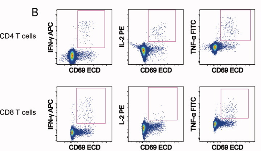 2). In both CD4+ and CD8+ T cells, identify cytokine-secreting cells (CD69 is used to exclude unactivated cells as background interference).