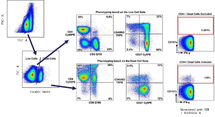 Figure 1. Impact of dead cells on flow cytometry data (DOI: 10.1016/j.jim.2006.04.007)