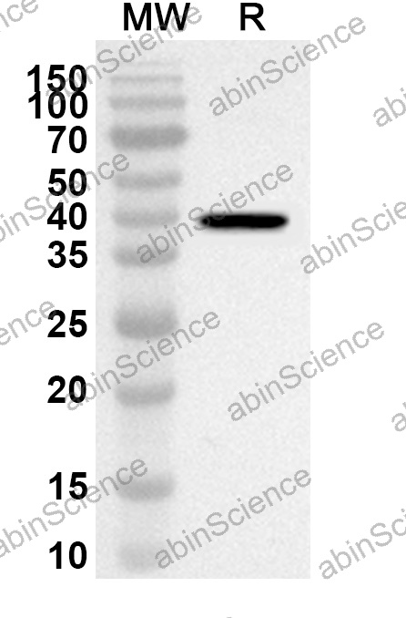 Western blot analysis was performed using anti-Mycoplasma pneumoniae mgpA/Adhesin P1 polyclonal antibody at 1ug/mL on recombinant Mycoplasma pneumoniae mgpA/Adhesin P1 (Catalog No. JN868012). |