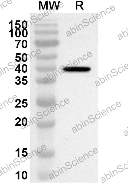 Western blot analysis was performed using anti-CD340/ERBB2/HER2/NEU polyclonal antibody at 1ug/mL on recombinant CD340/ERBB2/HER2/NEU (Catalog No. HY286012).