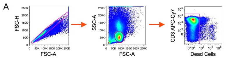1). Exclude aggregates and dead cells, then identify live CD3 T cells.