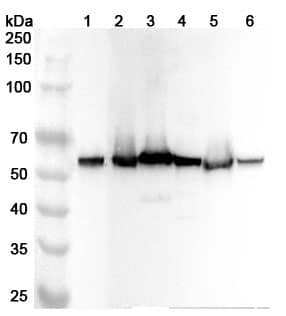 Western blot analysis was performed using anti-BECN1 polyclonal antibody at 1ug/mL on various samples. Lane 1: MCF-7 cell lysate Lane 2: Mouse testis lysate Lane 3: Mouse brain lysate Lane 4: Mouse lung lysate Lane 5: Rat testis lysate