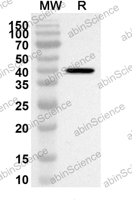 Western blot analysis was performed using anti-DUSP6 polyclonal antibody at 1ug/mL on recombinant DUSP6 (Catalog No. HS757012). |