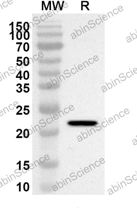 Western blot analysis was performed using anti-AICDA polyclonal antibody at 1ug/mL on recombinant AICDA (Catalog No. HV754012). |