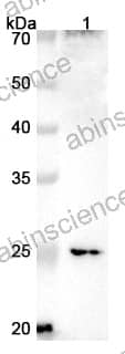 Storage buffer 0.01M PBS, pH 7.4, 50% Glycerol, 0.05% Proclin 300.