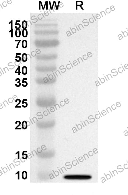 Western blot analysis was performed using anti-PPBP/CXCL7/NAP-2 polyclonal antibody at 1ug/mL on recombinant PPBP/CXCL7/NAP-2 (Catalog No. HY151012). |