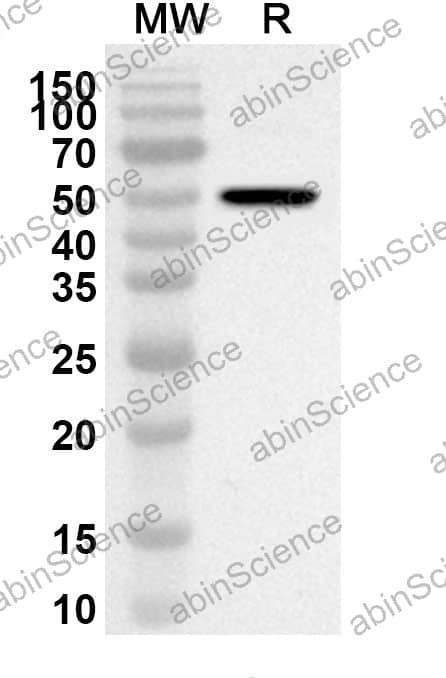 Western blot analysis was performed using anti-CYP3A4 polyclonal antibody at 1ug/mL on recombinant CYP3A4 (Catalog No. HY264012). |