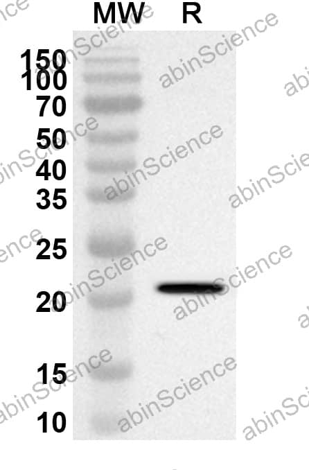 Western blot analysis was performed using anti-CD257/TNFSF13B polyclonal antibody at 1ug/mL on recombinant CD257/TNFSF13B (Catalog No. HV212012). |