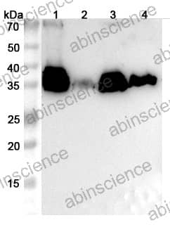 Western blot analysis was performed using anti-penl1 polyclonal antibody at 1μg/ml on various samples.