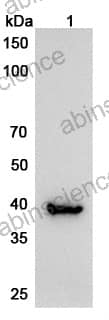 Western blot analysis was performed using anti-ATXN3 polyclonal antibody at 1μg/ml on various samples. Lane 1: Mouse liver lysate