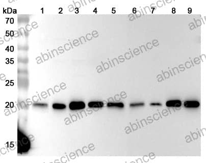 Western blot analysis was performed using anti-PSMB5 polyclonal antibody at 1μg/ml on various samples.
