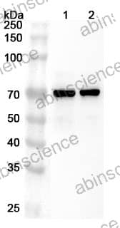 Western blot analysis was performed using anti-ALAS1 polyclonal antibody at 1ug/mL on various samples.