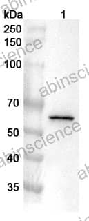 Western blot analysis was performed using anti-USP22 polyclonal antibody at 1µg/ml on various samples. Lane 1: HepG2 cell lysate