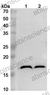Western blot analysis was performed using anti-MAP1LC3A polyclonal antibody at 1ug/mL on various samples.