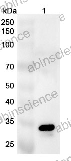 Western blot analysis was performed using anti-Human PSA/KLK3 polyclonal antibody at 1ug/mL on recombinant Human PSA/KLK3 (Catalog No. HY250012 ).