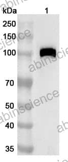 Western blot analysis was performed using anti-THBD polyclonal antibody at 1ug/mL on various samples. Lane 1: Rat lung lysate