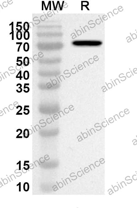 Western blot analysis was performed using anti-Human CTTN polyclonal antibody at 1ug/mL on recombinant Human CTTN (Catalog No. HC329012). |