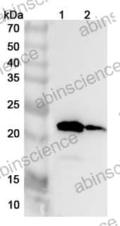 Western blot analysis was performed using anti-TNNC2 polyclonal antibody at 1ug/mL on various samples. Lane 1: Mouse skeletal muscle lysate Lane 2: Rat skeletal muscle lysate