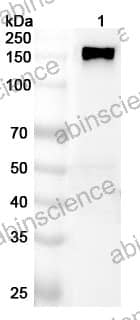 Western blot analysis was performed using anti-ANPEP polyclonal antibody at 1ug/mL on various samples. Lane 1: PC-3 cell lysate