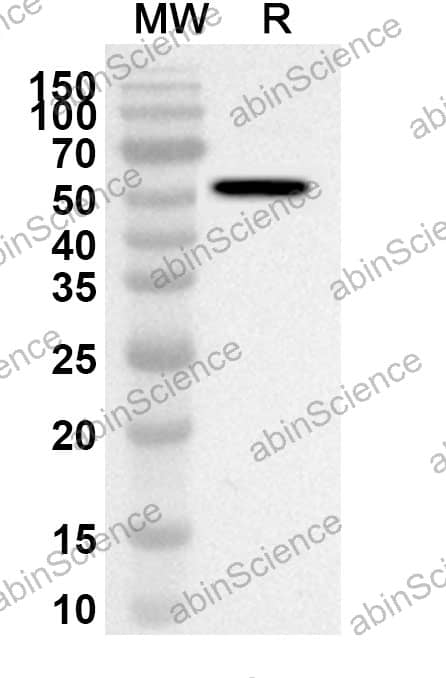 Western blot analysis was performed using anti-BCCV Gc/Glycoprotein C polyclonal antibody at 1ug/mL on recombinant BCCV Gc/Glycoprotein C (Catalog No. VK646012). |