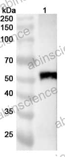 Western blot analysis was performed using anti-S1 polyclonal antibody at 1ug/mL on various samples. Lane 1: recombinant IBV S1/Spike glycoprotein 1 (Catalog No: VK710012)