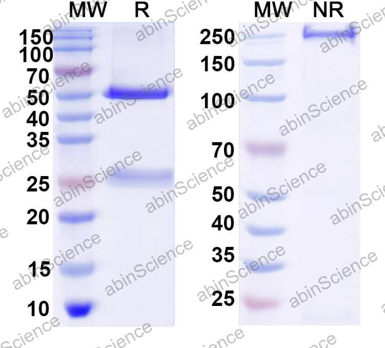 SDS-PAGE for Anti-CH1&CH2/Allergen Fel d I-A&B Antibody (SAA0615). |