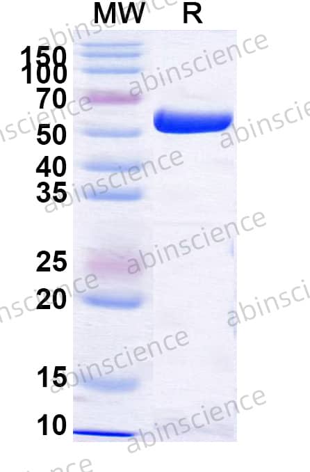 SDS-PAGE for Recombinant Influenza A virus (H1N1) NP/Nucleoprotein Protein, N-His. |