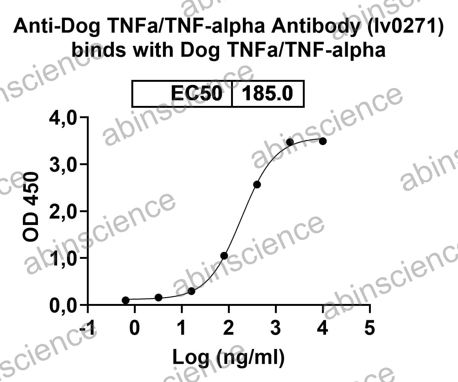 Detected by InVivoMAb Anti-Dog TNFa/TNF-alpha Antibody (Iv0271) (Catalog No: CF879010) in indirect ELISA |