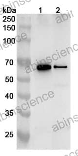 Western blot analysis was performed using anti-CHEK1 polyclonal antibody at 1ug/mL on various samples. Lane 1: NIH3T3 cell lysate Lane 2: PC-12 cell lysate