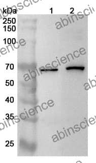 Western blot analysis was performed using anti-GPS1 polyclonal antibody at 1ug/mL on various samples.