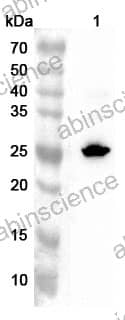 Western blot analysis was performed using anti-THOC7 polyclonal antibody at 1ug/mL on various samples. Lane 1: Mouse skin lysate