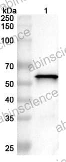 Lane 1: recombinant HCoV-OC43 NP/Nucleoprotein (Catalog No: VK457012)