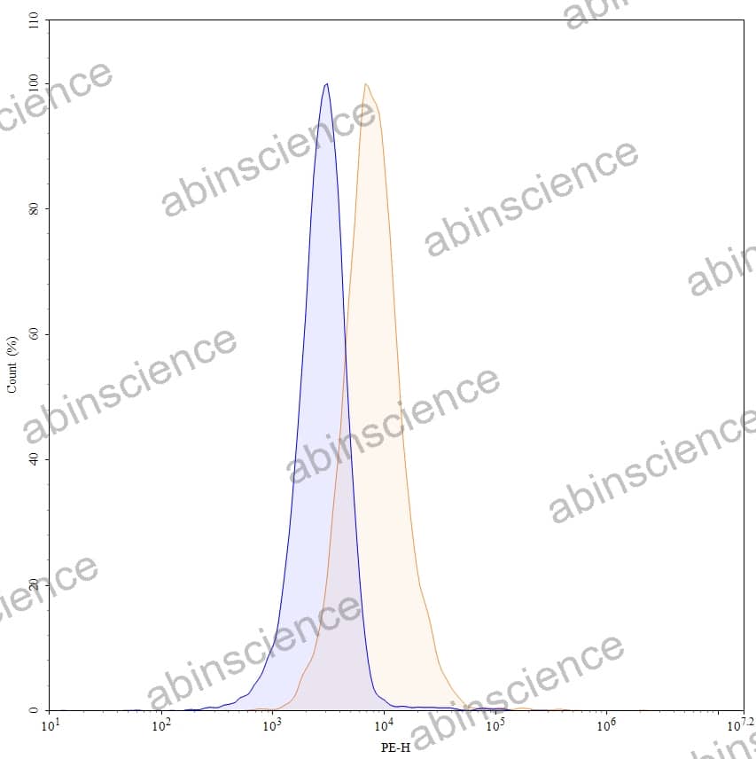 Flow-cytometry using PE anti-human CD54 antibody. RPMI-8226 cells were stained with an irrelevant antibody (Blue Histogram) or an PE anti-human CD54 monoclonal antibody (Catalog: HY321227, Yellow Histogram) at a concentration of 5 µg/ml for 30 mins at RT. After washing, and cells analysed on a NovoCyte Flow Cytometer. |