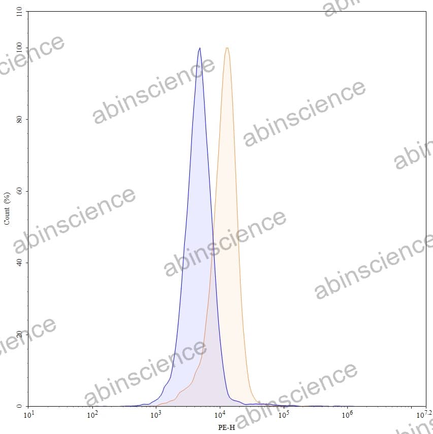 Flow-cytometry using PE anti-human MERTK antibody. HepG-2 cells were stained with an irrelevant antibody (Blue Histogram) or an PE anti-human MERTK monoclonal antibody (Catalog: HC320127, Yellow Histogram) at a concentration of 5 µg/ml for 30 mins at RT. After washing, cells analysed on a NovoCyte Flow Cytometer. |