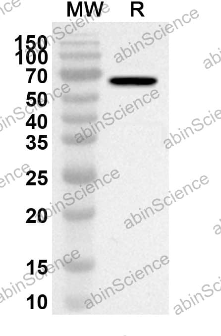 Western blot analysis was performed using anti-RET polyclonal antibody at 1ug/mL on recombinant RET (Catalog No. HY247012).
