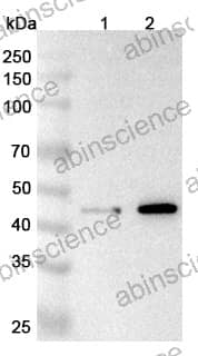 Western blot analysis was performed using anti-CFP polyclonal antibody at 1μg/ml on various samples. Lane 1: Mouse brain lysate Lane 2: Rat brain lysate