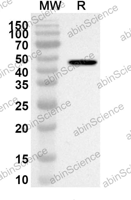 Western blot analysis was performed using anti-SRD5A2 polyclonal antibody at 1ug/mL on recombinant SRD5A2 (Catalog No. HB765012). |