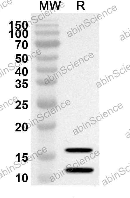 Western blot analysis was performed using anti-Human S100A8 & S100A9 polyclonal antibody at 1ug/mL on recombinant Human S100A8 & S100A9 (Catalog No. HY242012).